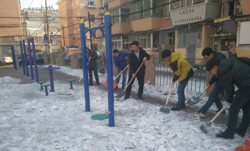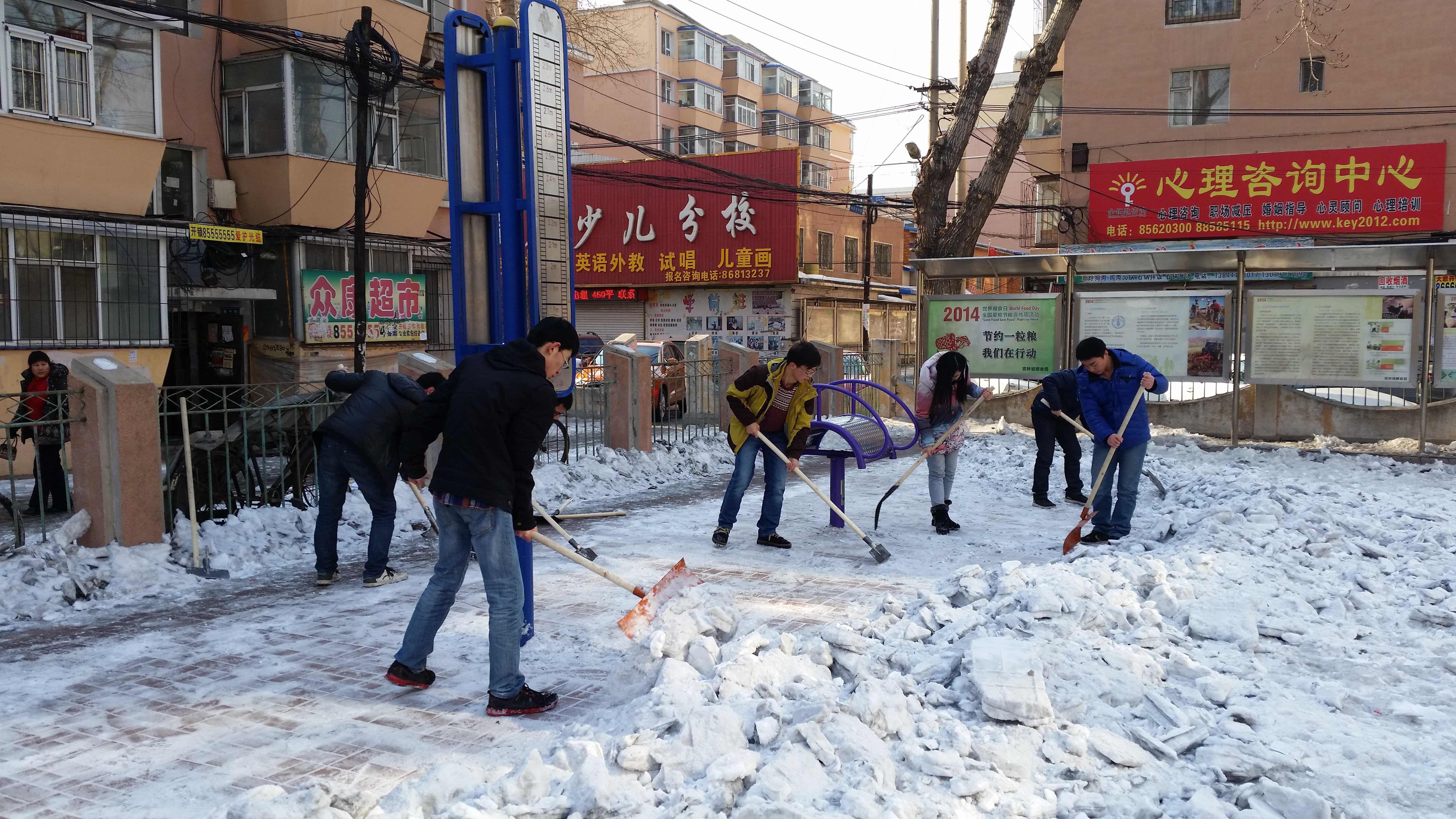 为深入贯彻落实习近平总书记系列重要讲话精神和李克强总理致公司白求恩志愿者回信精神,进一步弘扬雷锋精神和“奉献、友爱、互助、进步”的志愿者精神,组织引导广大青年员工在深入社会、了解国情、接受锻炼的过程中培育和践行社会主义核心价值观,让志愿服务成为每个吉大人的生活方式,让志愿者成为best365体育亚洲官网最响亮的名片,201535日下午,best365体育亚洲团委“牵手”青年志愿者协会志愿者在指导教师张昊宇的带领下走进朝阳区清和街道南昌社区开展义务除雪除冰活动。