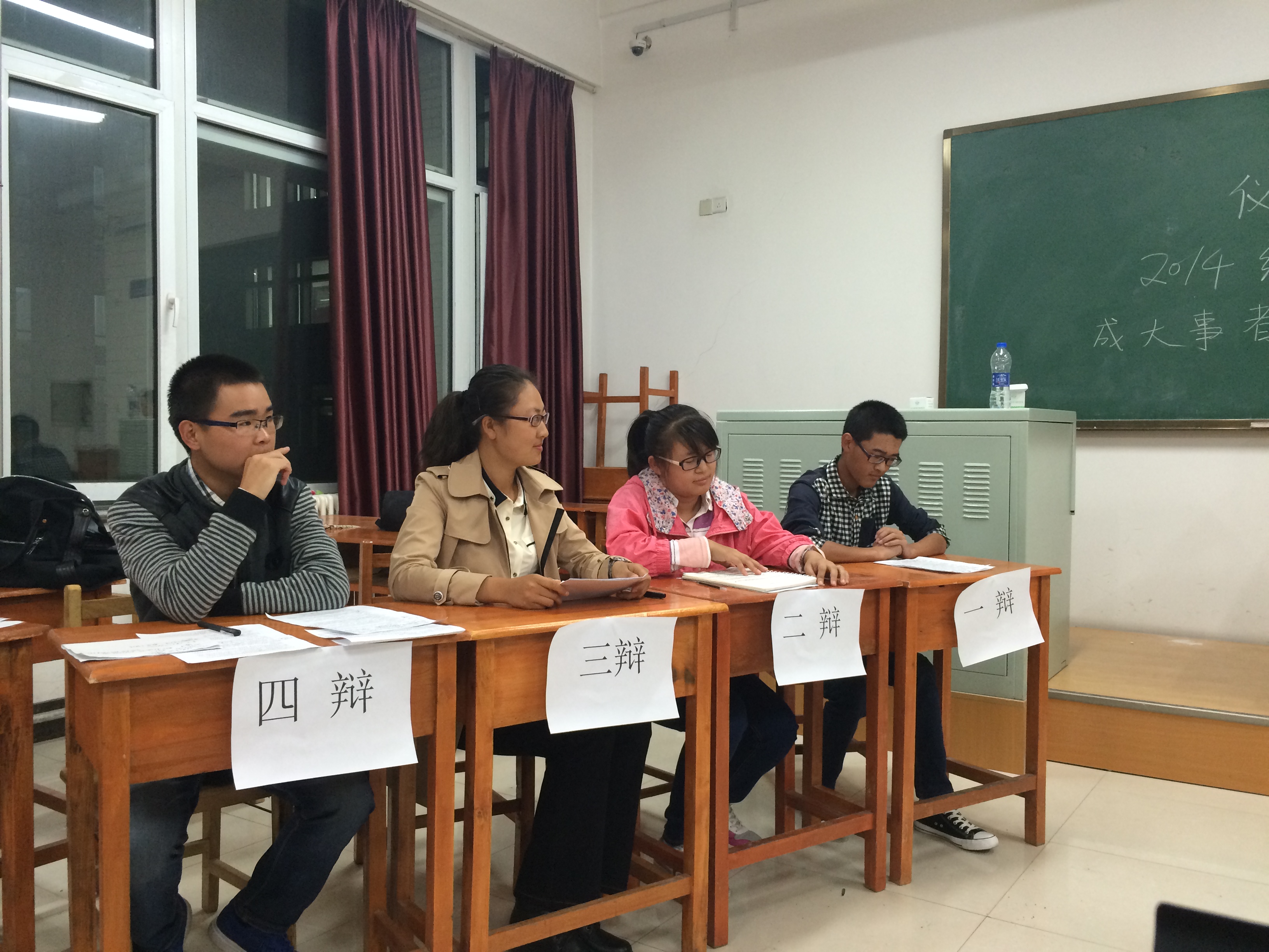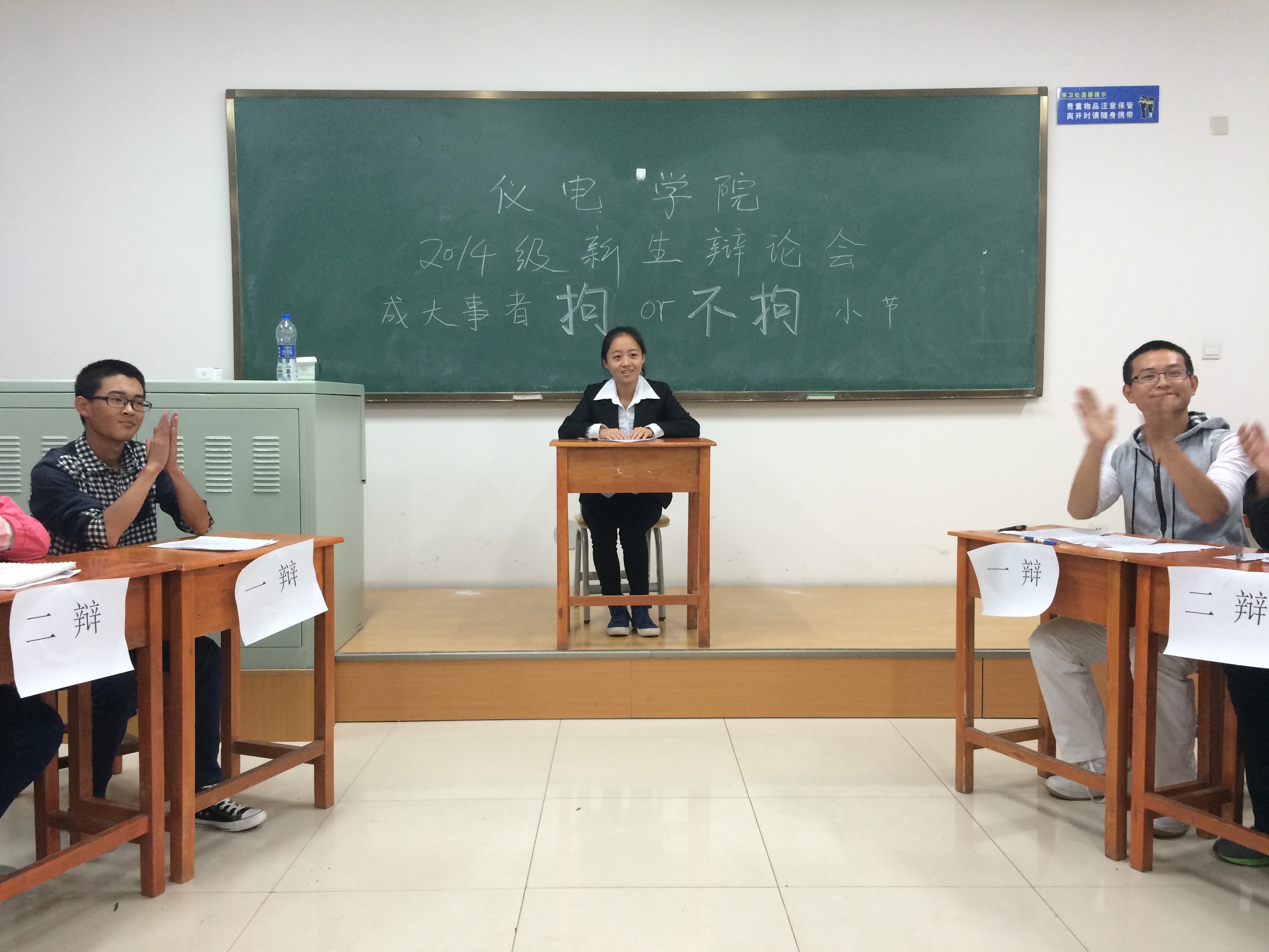 为丰富校园文化生活,提升青年员工思辨能力和语言表达能力,选拔培养优秀人才并积极备战best365体育亚洲官网第二十四届“先锋论坛”辩论赛,由best365体育亚洲员工会举办的“Power Speaking新生辩论赛”第二轮最后一场比赛于2014年10月21日晚在李四光318教室举行。本场比赛由“Power Speaking”协会成员担任评委及主持人,辩题为“成大事者拘or不拘小节”。