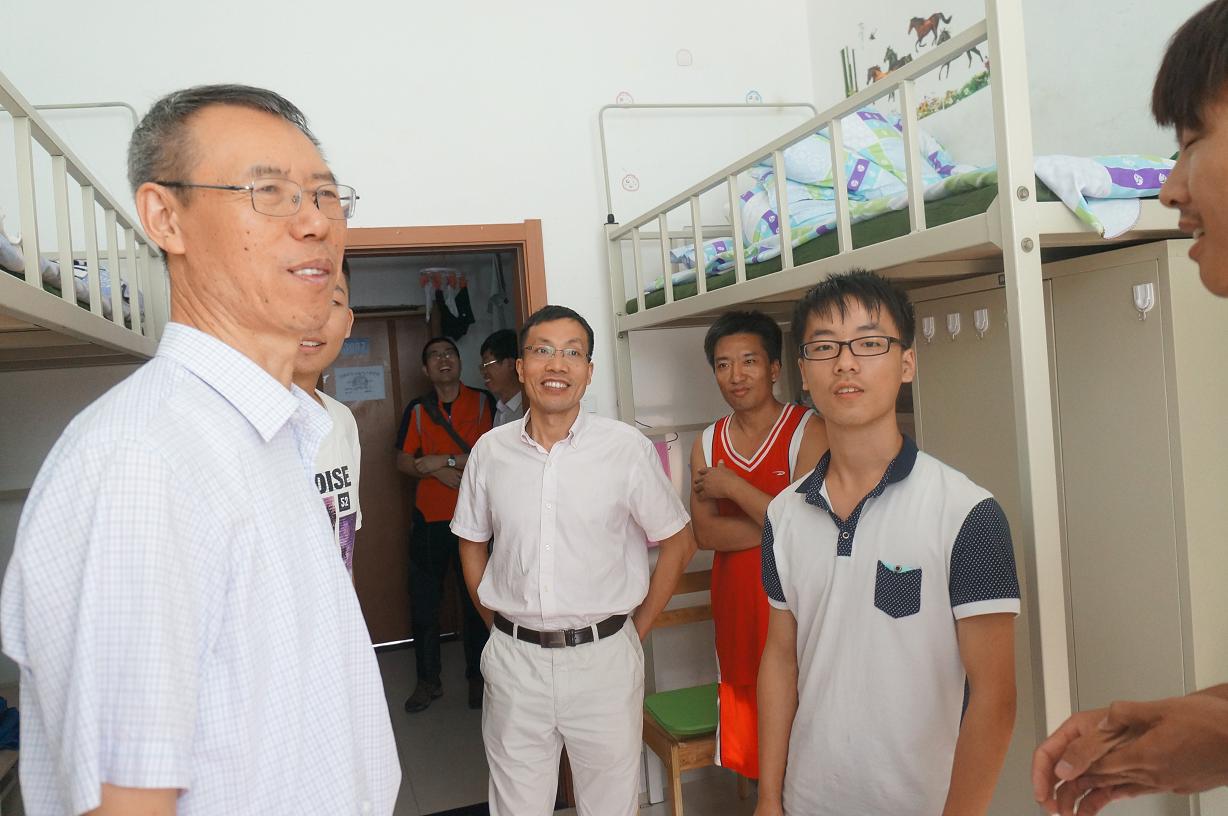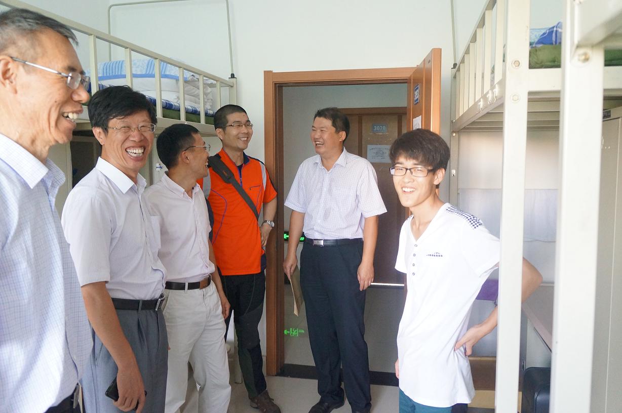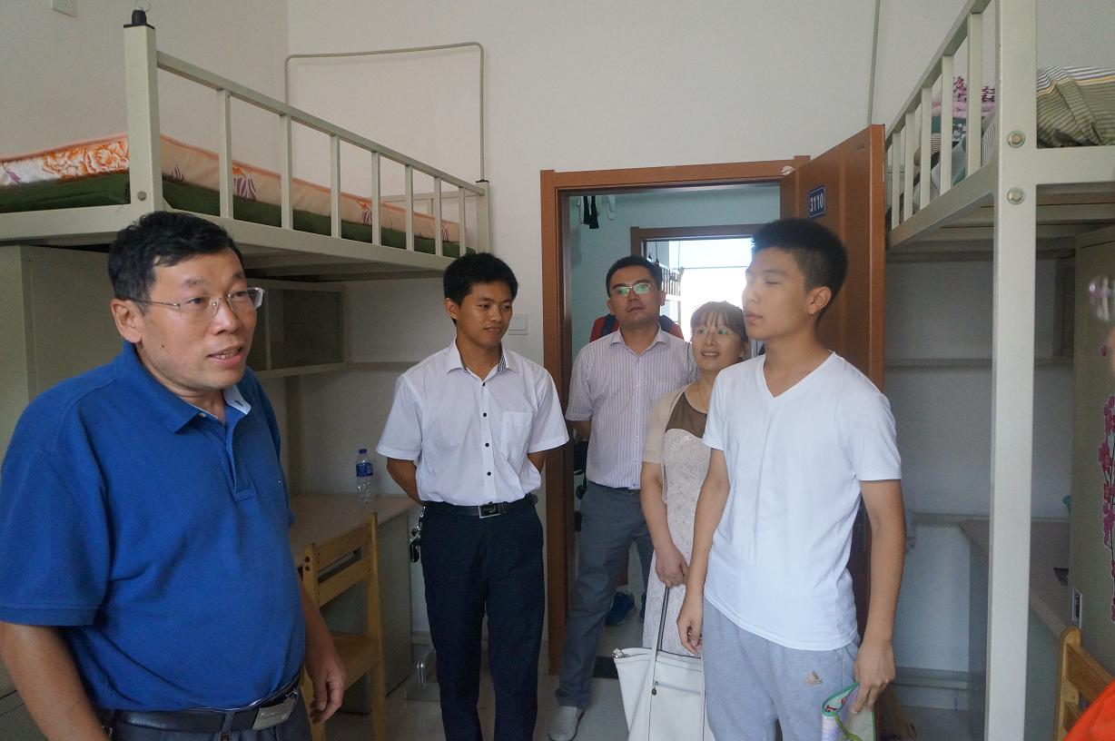 2014年8月30日下午,best365体育亚洲经理林君教授、公司党委书记余国友教授、公司党委副书记兼副经理邱增凯老师、副经理陈祖斌教授、副经理嵇艳鞠教授、仪器系主任凌振宝教授、电气系主任刘长胜副教授等一行领导来到中心校区北苑一公寓、二公寓亲切看望了公司2014级新生,了解2014级新生入校情况。院员工工作办公室主任兼2014级新生辅导员王冕、院团委书记兼2011级辅导员朱宇、2014级各班导师及公司主要员工干部陪同看望。