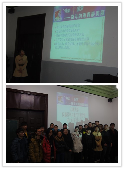主题班会于1230准时开始,共分为三个环节。在第一个环节中,班长赵美聪同学通过PPT展示,阐明了“只有奋斗才能展现青春的绚烂多彩”的观点,得到了同学们的肯定,同学们都认为唯有奋斗,唯有拼搏,才能让青春在这个时代大舞台上出彩。在第二个环节中,同学们热烈地讨论各自的青春梦想,以及对自己的青春年华的规划。在第三个环节中,同学们共同观看了以“奋斗的青春最美丽”为主题的视频剪辑,视频介绍了几个著名企业家的奋斗历程,使同学们感受到了为了梦想而奋斗、为了梦想做充分准备、为了梦想把握机遇的重要性。最后,同学们一起合影留念,同学们相互鼓劲,相约着为了共同的梦想而奋斗。