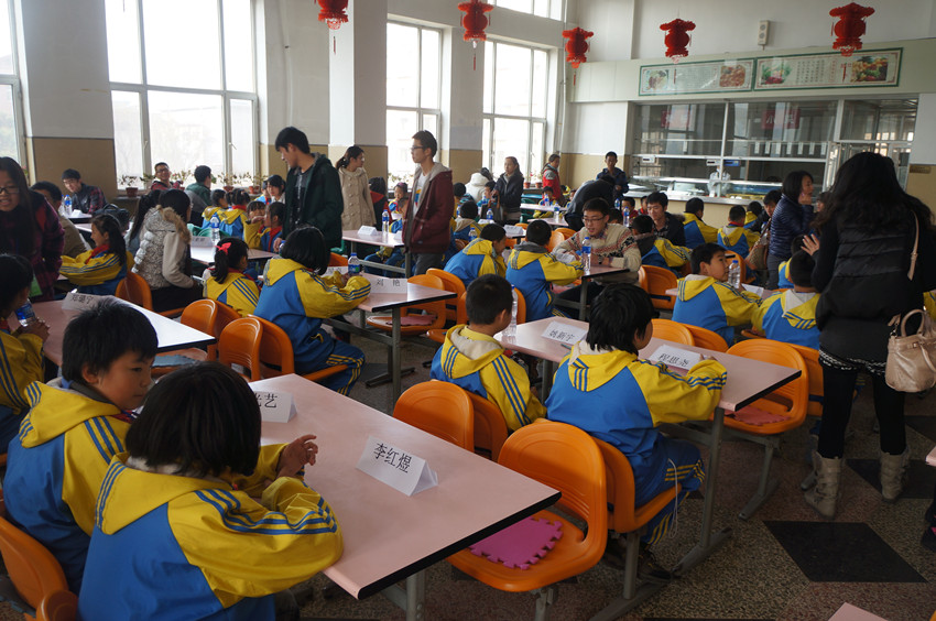 为确保此次活动的顺利进行,在111日中午best365体育亚洲团委志愿服务部和“牵手”青年志愿者协会便在朝阳校区开展了爱心一对一,请客吃午餐爱心午餐招募活动,为64名农民工子女分别找到了负责爱心午餐的志愿者。112日中午11:20,志愿者们准时来到朝阳校区食堂,在写着对应农民工子女名字的座位上等待,11:3064名农民工子女秩序井然地排队走进食堂,孩子们很快便在桌子上找到了自己的名字,老员工志愿者们热情地带领各自负责的小朋友到食堂窗口排队打饭,哥哥姐姐们热情大方,孩子们礼貌有加。可口的饭菜和温馨的关怀让小员工们感受到了如家的温暖。饭后,大家纷纷将餐具送到回收处,然后回到座位聊天谈心,在聊天中志愿者们了解到,许多孩子来自于祖国的四面八方,他们的父母为我们城市的建设挥洒着辛勤的汗水,更为我们祖国的发展贡献着坚实的力量;志愿者们纷纷鼓励孩子们要勤奋学习,积极向上,为实现自己的人生理想和伟大的“中国梦”而不懈奋斗。