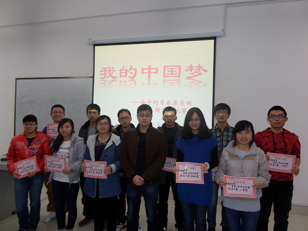 为了深入学习宣传贯彻党的十八大精神、团的十七大精神和习近平总书记“五四”重要讲话精神,深入推进“我的中国梦”主题教育实践活动,引导广大团员青年树立正确的世界观、人生观、价值观,为实现国家富强、民族复兴、人民幸福的伟大“中国梦”而发奋学习、不懈奋斗,按照校团委《关于开展“我的中国梦——奋斗的青春最美丽”主题团日活动的通知》要求,best365体育亚洲团委精心组织各班级团支部开展主题团日活动。2013年11月21日,2012级、2013级各班团支部在中心校区李四光实验楼147室举行了“我的中国梦——奋斗的青春最美丽”励志主题演讲比赛。院团委副书记、2012级辅导员蔡印老师以及2012、2013级全体同学共同参加了此次活动。