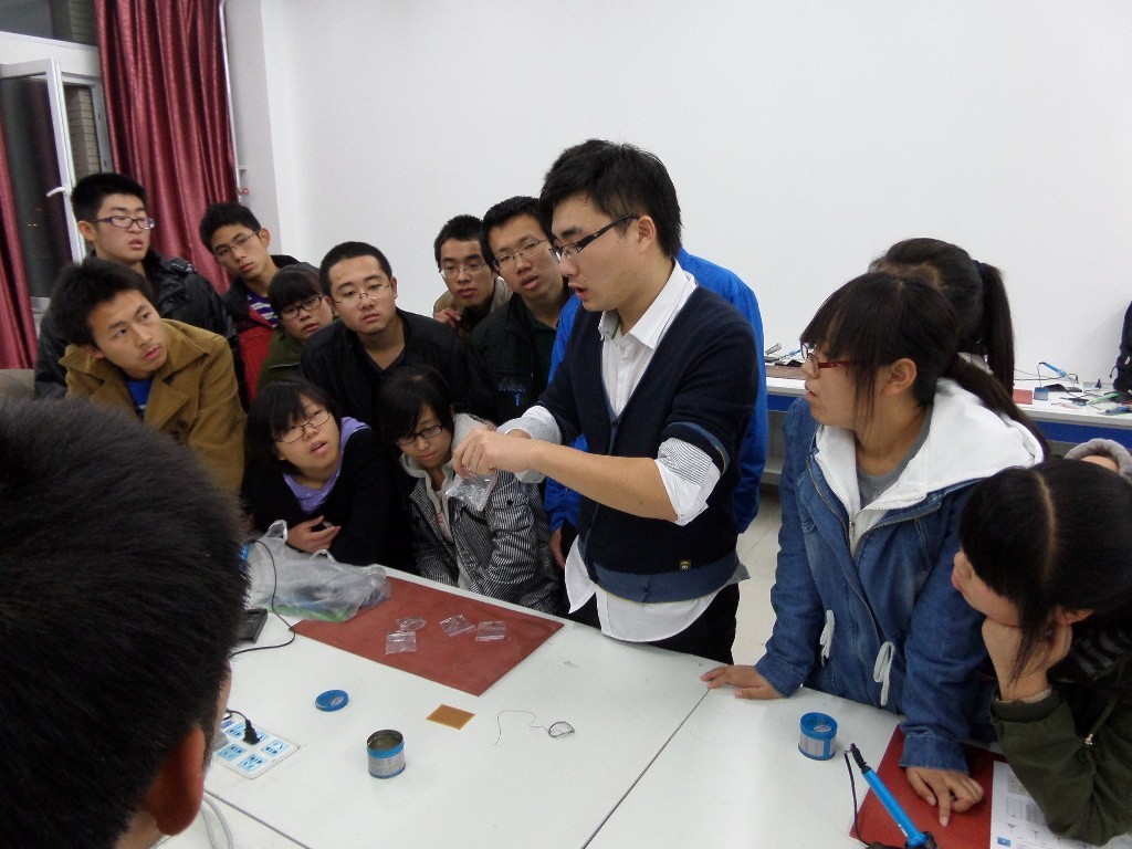 为认真贯彻落实习近平总书记在2013年国庆节参观北京中关村时有关“科技创新”的重要讲话精神,进一步提高青年员工的创新精神和实践能力,为广大电子爱好者提供一个良好的学习交流平台,锻炼员工专业技术技能,增强员工的竞争力,best365体育亚洲老员工科技协会于2013年10月26日在中心校区李四光实验楼533室组织了第二期电子科技技术培训活动,本次培训由科技协会主要骨干成员进行指导,协会2013级全体新成员参加了此次培训。