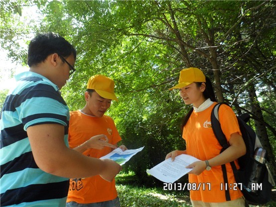 为深入学习宣传党的十八大精神和习近平总书记五四重要讲话精神,扎实开展“我的中国梦”主题教育实践活动,进一步引导青年员工深入基层、走进群众,激发青年员工成才报国的责任感和积极性,best365体育亚洲团委组织开展了2013年暑期文化科技卫生“三下乡”社会实践系列活动,2013817日上午,由best365体育亚洲2011级四班徐维、彭醒醒、张楠等同学组成的社会实践团走进长春市南湖公园开展了“青春中国梦 环保树新风”主题志愿服务活动