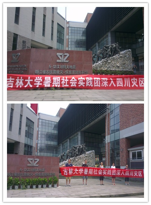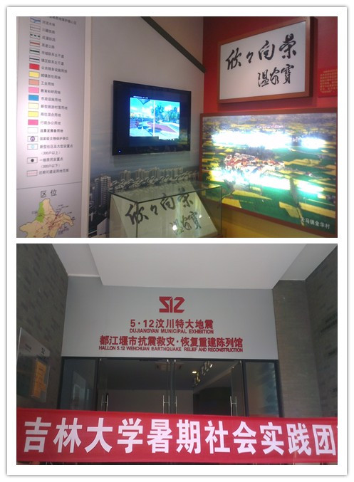 顶着炎炎烈日,社会实践团一行乘车于当天中午到达了四川省都江堰市,随后立即前往参观“5•12”四川汶川特大地震都江堰市抗震救灾·恢复重建陈列馆。在陈列馆门前,许多游客和当地群众看到不远千里来到这里的best365体育亚洲官网暑期社会实践团纷纷合影留念。之后,实践团成员在解说人员的带领下进入陈列馆参观。陈列馆展览作品共分为十个部分,详细展示了都江堰市从2008年5月经历汶川特大地震到抗震救灾和恢复重建的发展过程。在工作人员的讲解下,实践团全体成员结合展览图片认真学习了一个个抗震救灾的感人事迹,深刻感受到了灾难面前四川人民群众在党和政府的坚强领导下团结拼搏、自强不息的奋斗精神,见证了灾区恢复重建从科学规划到快速建设的飞跃变化。