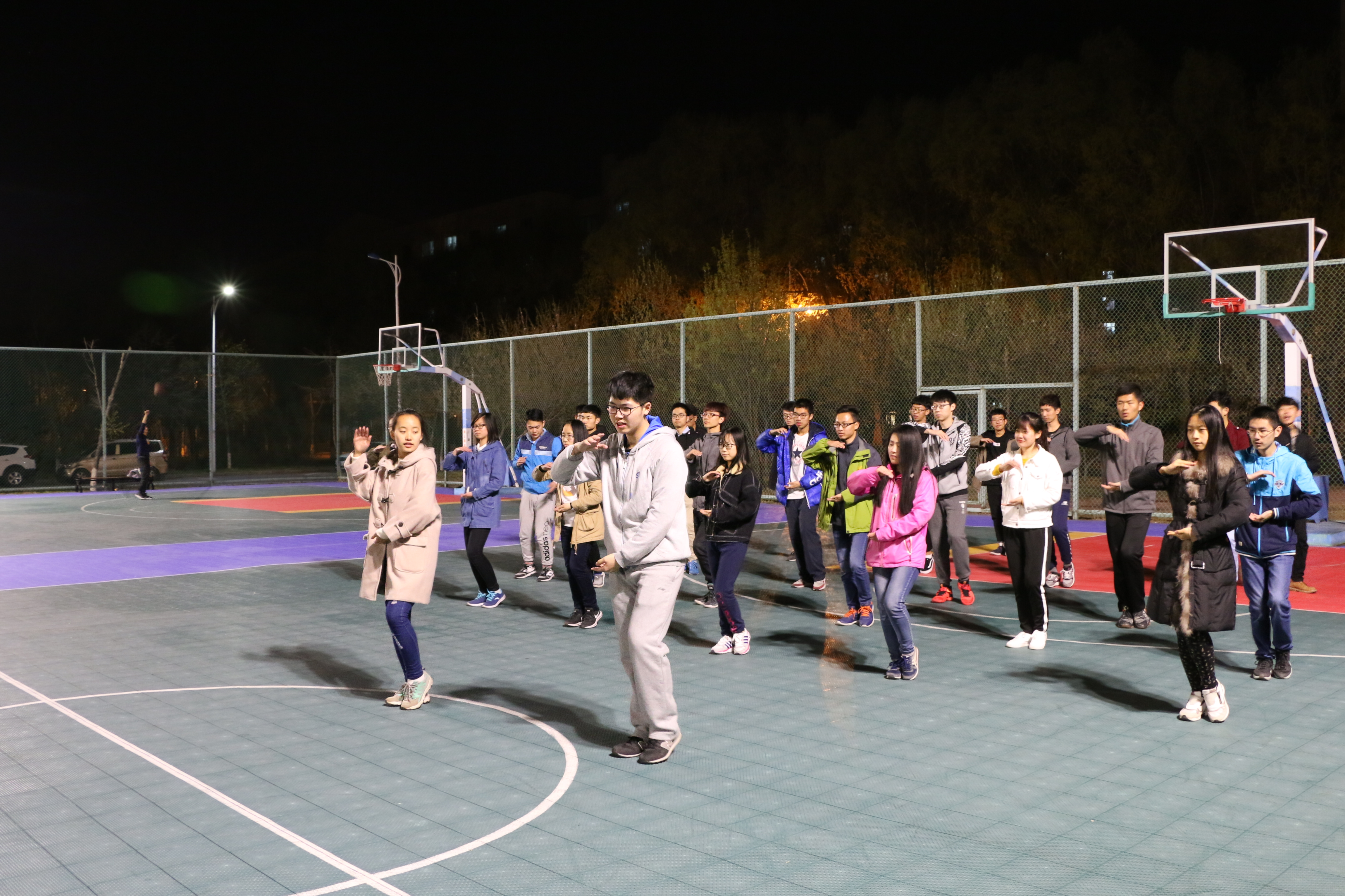 晚上920,大一的同学们聚集在中心校区篮球场,正式准备进行太极拳训练。在训练场上,同学们不惧寒冷,反复琢磨每一次抬腿和出拳,认真练习,力求做到精准到位。两位领队员认真细心,对大家耐心地进行动作纠正和细节完善。上一届太极拳的领队张天龙学长更是认真负责,亲自到训练场为正在训练的大一同学们进行动作演示和督导。同学们专注的眼神和认真的态度,充分显示了对于此次训练的重视。