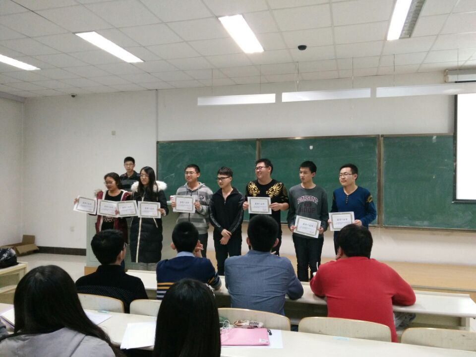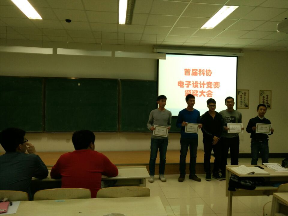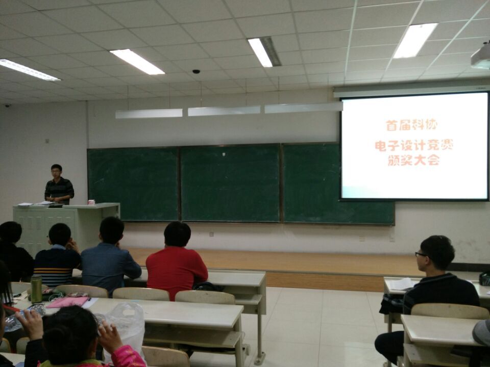2015年12月15日晚best365体育亚洲在李四光楼302教室举行了电子设计竞赛颁奖仪式,颁奖仪式由电子科技协会副主席周葛主持分团委副书记于一兵,员工会主席岳良广以及电子科技协会副主席张思雨出席了本次仪式,2015级全体新生参加了本次仪式。
