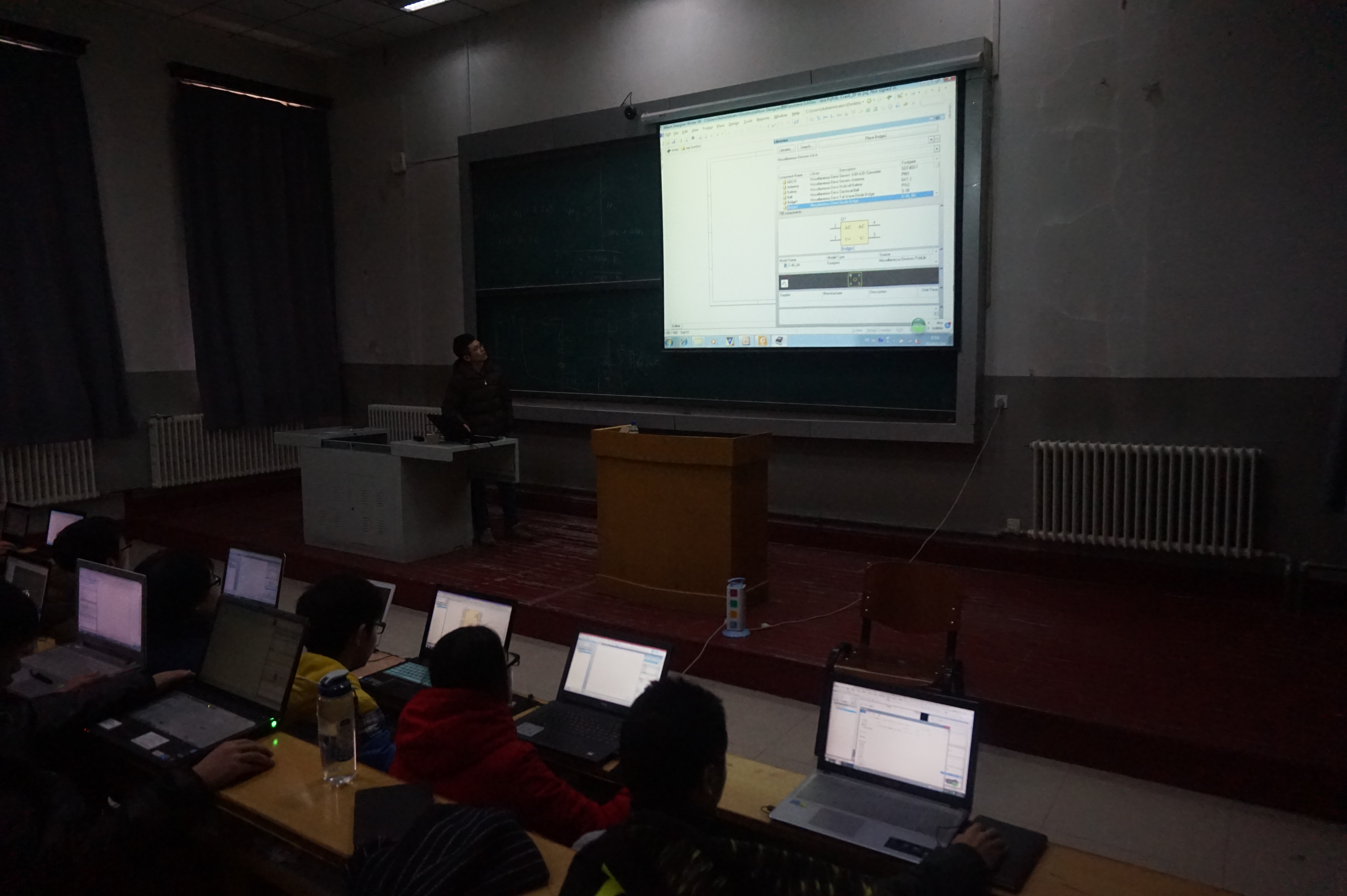 上午8:00-11:00于地质宫224教室,滕飞老师为2014级队员讲解ARM微处理器。老师首先向同学们简要介绍了Arm单片机的的发展历史,接着讲解了我们培训使用的单片机的使用流程。随后,老师带领同学们一起用keil软件建立驱动Arm单片机的工程。由于建立Arm驱动工程的过程比较复杂,期间有不少同学掉队,但老师不抛不弃,耐心地带领每个同学做好。这次Arm 单片机的培训持续时间长,训练强度大,但在老师耐心地带领下,大家最终都完成了任务。上午8:00-下午17:00,2013级队员继续完成各组的专业社会实践任务。晚上18:00-20:00于地质宫“216开放实验室”, 滕飞老师为2013级控制组队员讲解视频模块。首先滕飞老师简单介绍了OV7670视频模块的基本参数,又就2015年国赛飞机题和魔方机器人详细的讲解了视频模块的使用。最后滕飞老师要求控制组全体在假期完成图像采集的程序编写。晚上18:00-20:00于地质宫408实验室,杨泓渊老师为2014级队员讲解2015年国赛复测题。老师首先向同学们简要向同学们介绍了上一年度全国老员工电子设计竞赛综合测评题的主要内容以及相关的要点。之后,老师带领大家逐条分析题目,并讨论实现方案。最后杨老师要求各组仿真设计并制作出成品。