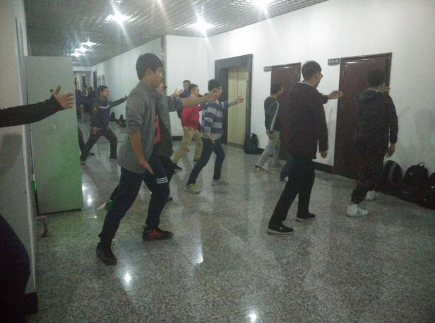 虽然时间较晚,但同学们对练习太极拳的热情丝毫不减。所有同学都是晚课刚刚结束就来到训练场地,没有迟到怠慢。虽然没有专业的太极拳老师,但师哥师姐们每一招式都做到标准,同学们聚精会神地学习每一动作细节。起势、野马分鬃等等招式,同学们都认真学习,努力做到连贯娴熟。
