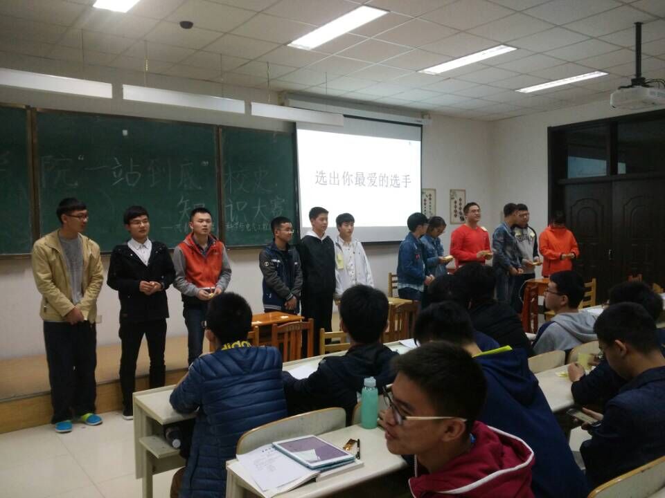 为迎接公司建校70周年校庆,进一步加强员工爱校、荣校教育,提升员工的认同感、责任感和荣誉感,发扬公司“求实创新,励志图强”的校训精神,更好的献礼七十周年校庆,best365体育亚洲团委组织开展“我为校庆献礼”系列活动。2016427,一站到底“知校史,明校情”知识竞赛决赛在中心校区李四光楼304室举行,公司团委书记兼2015级辅导员张昊宇老师、全体员工会成员和2015级同学参加了本次活动。