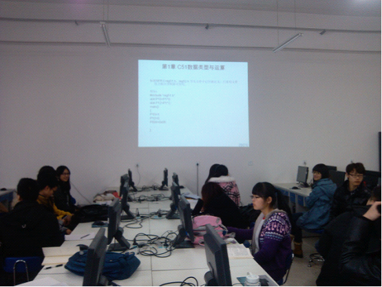 下午13:30时,讲座正式开始。蔡老师首先利用投影仪放映幻灯片给同学们演示介绍了单片机的相关基础知识。接下来,蔡老师讲到了本次讲座的重点——51单片机C语言入门。每讲完一个知识要点,蔡老师都会举出几个实际例子来帮助同学们加深理解。同学们听得都很认真,一边思考一边做记录。对于同学们提出的疑问,蔡老师耐心细致地进行讲解,现场气氛轻松活跃。随后,蔡老师为大家讲解了另一个重要内容——步进电机控制。蔡老师利用视频动画演示结合文字解说多种方式进行教学,生动有趣。下午15:00时,本次讲座圆满地落下了帷幕。