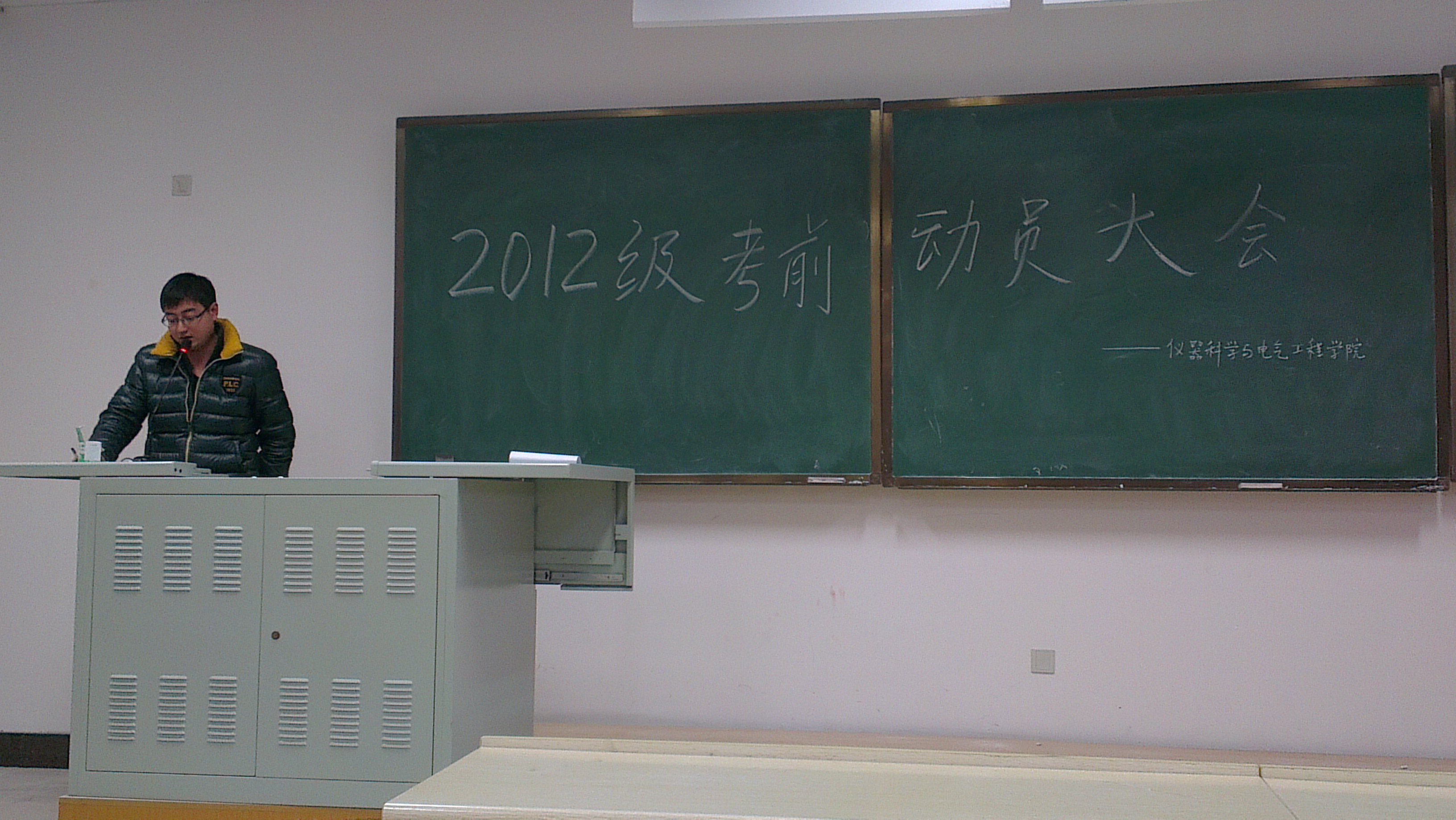 为更好地组织期末考试,让同学们在考试到来之际切实做好复习工作,真正认识到考试的重要性并在考试中发挥出最好水平,best365体育亚洲于2012年12月7日13:30时在中心校区李四光楼304室组织了2012级期末考试动员大会。本次活动由2012级辅导员蔡印老师主持,仪电公司2012级全体同学参加了此次会议。
