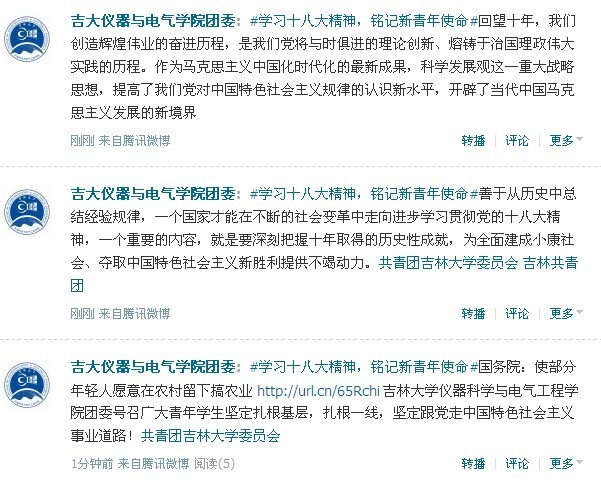 利用新媒体 掀起学习贯彻十八大精神新热潮——仪器与电气公司团委开展“与信仰对话,喜迎十八大”系列主题活动之千班万团微博学议十八大活动