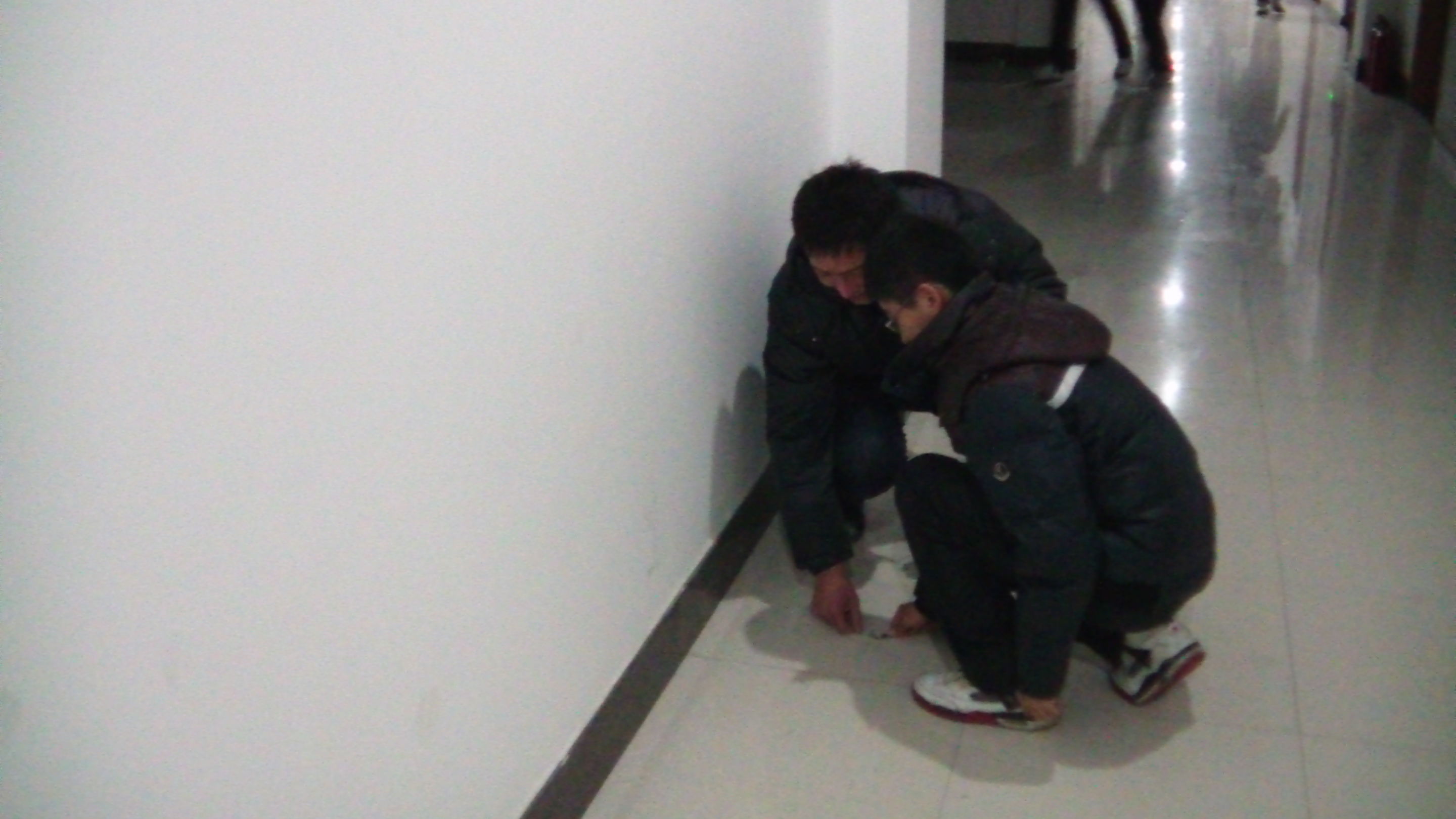 3月11日下午,2011级一班同学在班委的带领下集体前往李四光教学楼清除教学楼地砖上的口香糖。这项工作着实麻烦,但是同学们依然不顾困难,仔细查找,耐心地蹲在地上用铁直尺清除口香糖,赢得了李四光楼工作人员和同学们的好评。