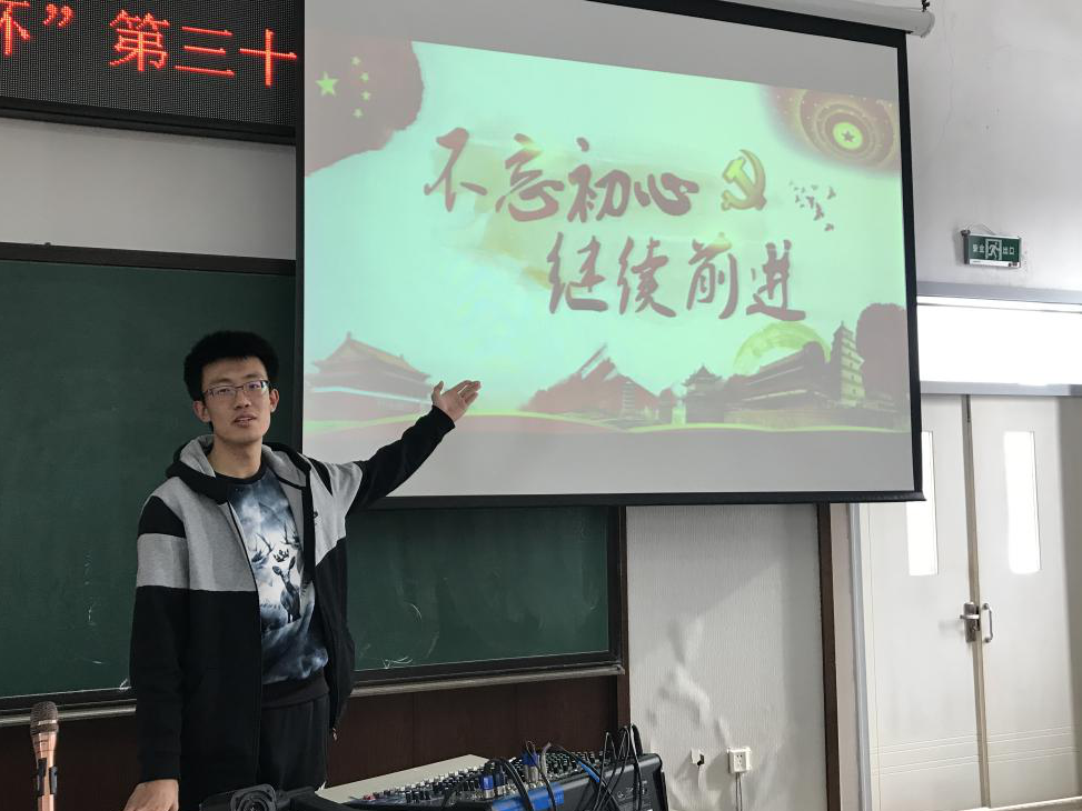 “‘长安何处在,只在马蹄下。’梦想不会自动变为现实,初心只能用行动去体现。”主讲人李福浩同学以诗化的言语激情开讲,“每个人只有脚踏实地的努力,才能真正实现中华民族伟大复兴,实现中国梦。”从历史的角度、体验的角度、细节的角度、文本的角度、话语的角度、人物的角度和词汇的角度,分享了自己学习学习党的十九大精神的领悟和思考。