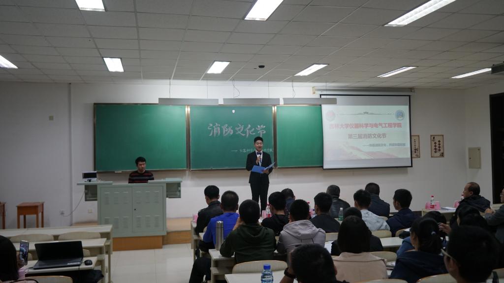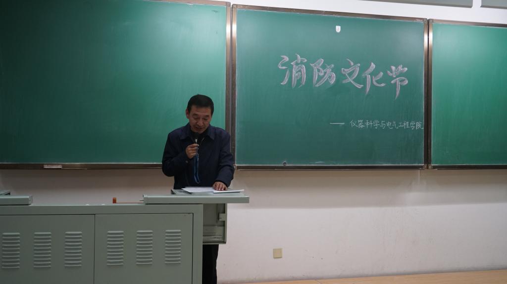 活动共分为五个环节。第一环节,北区朝阳保卫办防火科齐占斌科长首先肯定了公司在消防安全方面所做的工作,随后为公司学子详细地介绍了日常生活中的消防安全隐患以及相应的处理方法,并且讲述了报警时候的注意事项,消防器材的使用方法等,同学们频频点头,收获满满,对消防安全有了更深的认识。第二环节,2018级各班选出的代表依次上台介绍了本班的消防文化节创意视频,展示的作品丰富多彩,贴近生活,既有趣又极具教育意义,赢得了全院师生的阵阵掌声。第三环节,2018级各班分别派出两名代表,通过抢答的方式回答不同的消防文化知识。同学们热情高涨,争先作答,各抒己见。第四环节,以班级为单位的抢答环节过后,同学们意犹未尽,主持人采取了互动的模式,随机抽取一道题,由台下的同学举手回答,同学们十分积极,踊跃抢答,尽展仪电学子风采。 第五环节,在紧张激烈的抢答之后,轻松愉悦的音乐响起,王爱民教授,齐占斌科长以及葛晓野老师为各个优秀的班级颁发证书。之后王爱民教授强调,消防安全重于泰山,我们每个人都要真正把消防安全牢记于心,将理论与实践相结合,做到防患于未然。同时,王爱民教授呼吁同学们关注消防安全,提高消防意识,为传播消防安全知识构建平安校园共同努力。