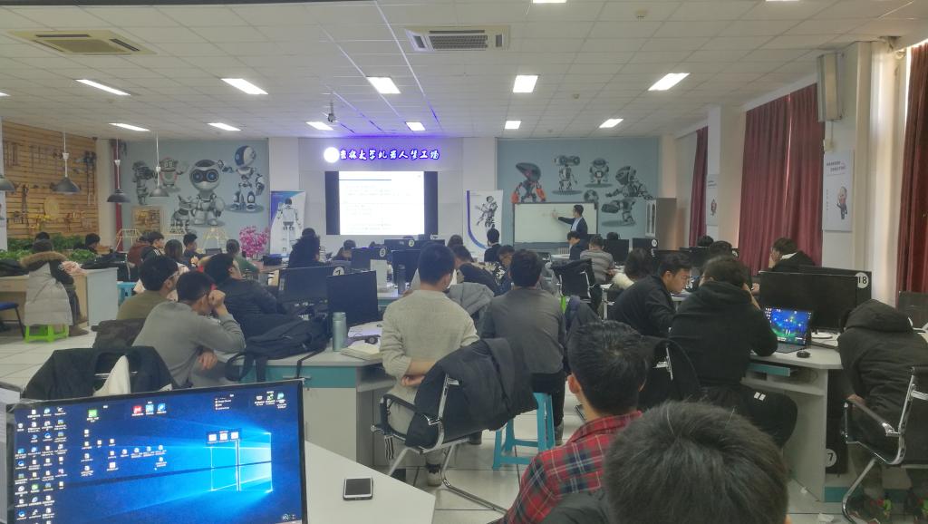宣讲大会结束之后,丰富多彩的冬令营生活随即展开。田宝凤老师针对基础电路知识体系的构建,以电子测量为主题,介绍了测量误差分析数据处理以及基础电子物理量的测量,随后又结合频率合成的相关知识,对DDS的原理和应用进行了详细的讲解。之后,蒋川东老师针对误差分析这一课题,对三种误差的分析和处理进行了更加深刻的讲解,使参加此冬令营的员工们受益匪浅。随后几天,培训地点转移到李四光楼501室,腾飞老师带领员工们学习并认识了ARM处理器,并且耐心认真的讲解了Keil软件的操作方法以及GPIO和中断函数的应用,员工们在腾飞老师的引导下,认真努力地学习和操作实践,最终都学到了不少知识,为以后的电子设计比赛做好了充分的准备。随后,周志坚老师在电路分析和数字电路知识的基础上,带领员工了解并认识了模拟电路课程,针对理想运算放大器这一电子器件,老师对其特性和应用进行了详细的讲解,在此基础上引导员工进行简单的电路设计,员工们积极思考,并对部分疑难点提出了困惑,老师旁征博引,耐心解释,最终顺利的解决了员工们的困惑。