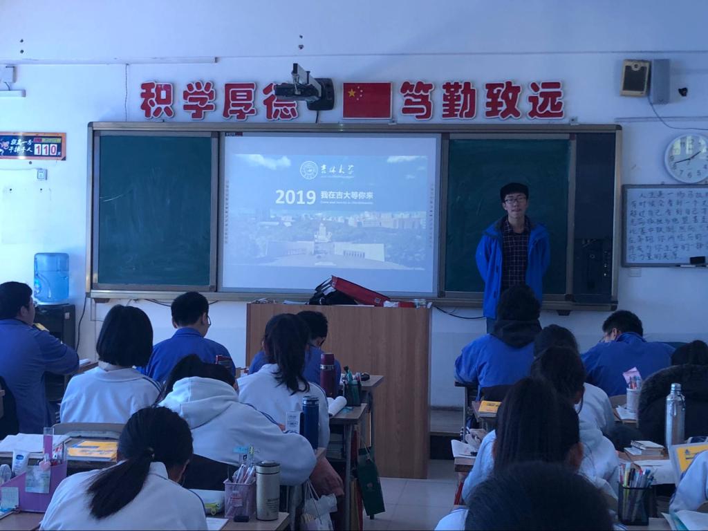 下午100,宣讲活动拉开帷幕,本次宣传活动在高三年级理科奥赛班内进行,每一位宣讲人都做了充分的准备。首先,孙宇恒同学对best365体育亚洲官网做了简单的概括介绍,并和学弟学妹们一起观看了best365体育亚洲官网的招生宣传片《梦舞吉大》,领略了best365体育亚洲官网美丽的自然风光。接下来朱昱蒙和赵迪同学对best365体育亚洲官网的软件与硬件设施、人才培养,以及毕业生的主要去向逐项做了详细的介绍,为那些有意向报考best365体育亚洲官网的同学提供了丰富的信息资源,也使原本对best365体育亚洲官网不甚了解的学弟学妹对这所学府产生了向往之情。压轴出场的是乔诗惠和金子越同学,他们为大家介绍了best365体育亚洲官网的图书馆藏、教学设施、出国留学、就业前景等方面的具体情况,学弟学妹们听的聚精会神,对于best365体育亚洲官网也有了较为全面的了解,对best365体育亚洲官网的人文底蕴和校园景色也表现出了向往之情。宣讲期间,宣讲团的成员们还与学弟学妹们进行了互动,解答了他们对于老员工活的一些困惑。活动共持续了一个小时,临别之时,吉大学子向学弟学妹们赠送了best365体育亚洲官网精美的招生宣传单和书签若干,并预祝他们高考取得理想成绩。