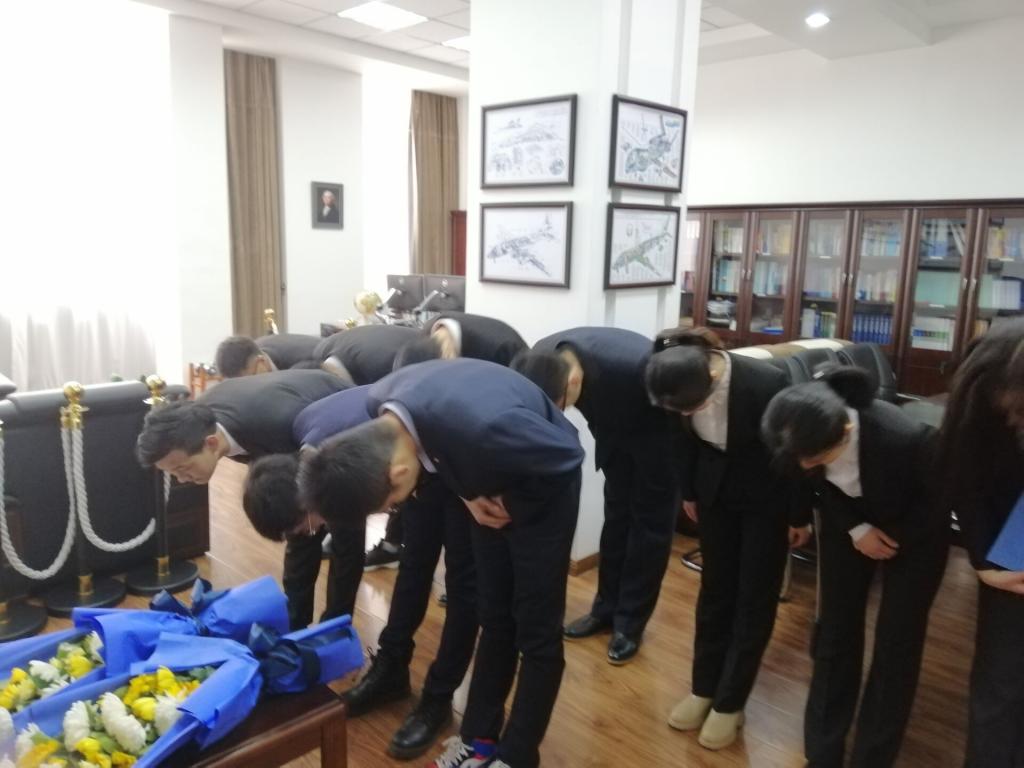 上午9时,员工代表们身着正装在地质宫前集合。大家一起来到黄大年纪念室,员工代表占鸿燕追忆了黄大年先生的光辉事迹,表达对黄大年先生的仰慕之情以及缅怀之意。同学们肃穆的站在纪念室中,为黄大年先生默哀三分钟,深切体会黄大年先生忧国忧民、引领时代潮流的先锋精神。致辞结束后,员工代表向黄大年老师的塑像献花,全体同学鞠躬,以表达对黄大年先生的崇高敬意以及缅怀之情。活动最后,同学们认真打扫了黄大年纪念室。