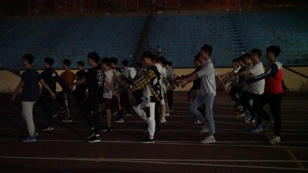 本次方队训练工作的教练由2017级仪电公司孙阳、吴广栋、李修权同学担任,参赛队员由2018级同学组成,并有体育部部长定期前来监督训练工作检查训练的效果情况,方队训练正在有条不紊地进行。齐心协力,争创佳绩,仪电三军,所向披靡”,是仪电方队的口号,也是同学们精神力量的体现。方队成员在操场上挥汗如雨的训练,尽职尽责的2017级同学也不厌其烦地纠正动作鼓励方阵同学做到更好,争取将方队训练得更加整齐有序。在这北国春城的夜色里,在美丽的best365体育亚洲官网的操场上,迎着凉爽的春风,同学们坚定的步伐踏踏有力,有力的摆臂整齐划一,响亮的口号响彻云霄,无不体现仪电学子们昂扬的斗志和意气风发的精神风貌。