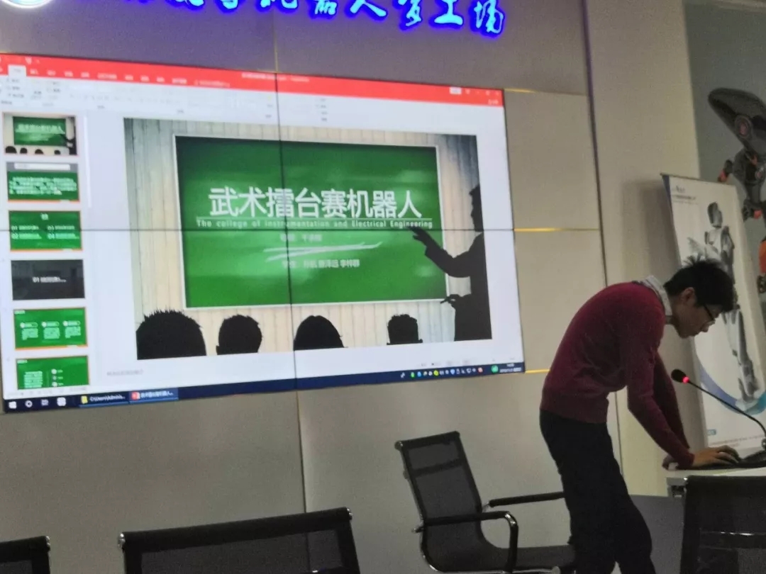 首先,王喆同学讲解了博创机器人的比赛规则和硬件调试方法。随后,惠乾鑫同学对博创人形机器人进行了简要介绍,并与学弟学妹们分享了参加机器人比赛的心得与体会。最后,滕泽远同学讲述了他对武术擂台赛机器人比赛项目的理解、选择做该项竞赛的原因以及比赛的收获。讲解结束后,在场的学长学姐分享了学习和生活上的经验,并对19级同学的老员工活给出了一些建议。同学们纷纷表示,在此次活动中了解了很多有关机器人的知识,受益匪浅。