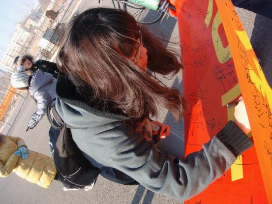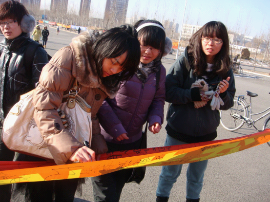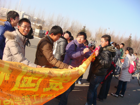 为纪念“一二•九”爱国运动七十六周年,进一步促进青年老员工铭记历史、勿忘国耻,激发莘莘学子的爱国热情,明确自己肩负的社会责任与历史使命,best365体育亚洲团委、员工会于2011年12月9日中午在中心校区举办了纪念“一二•九”运动主题签名活动。