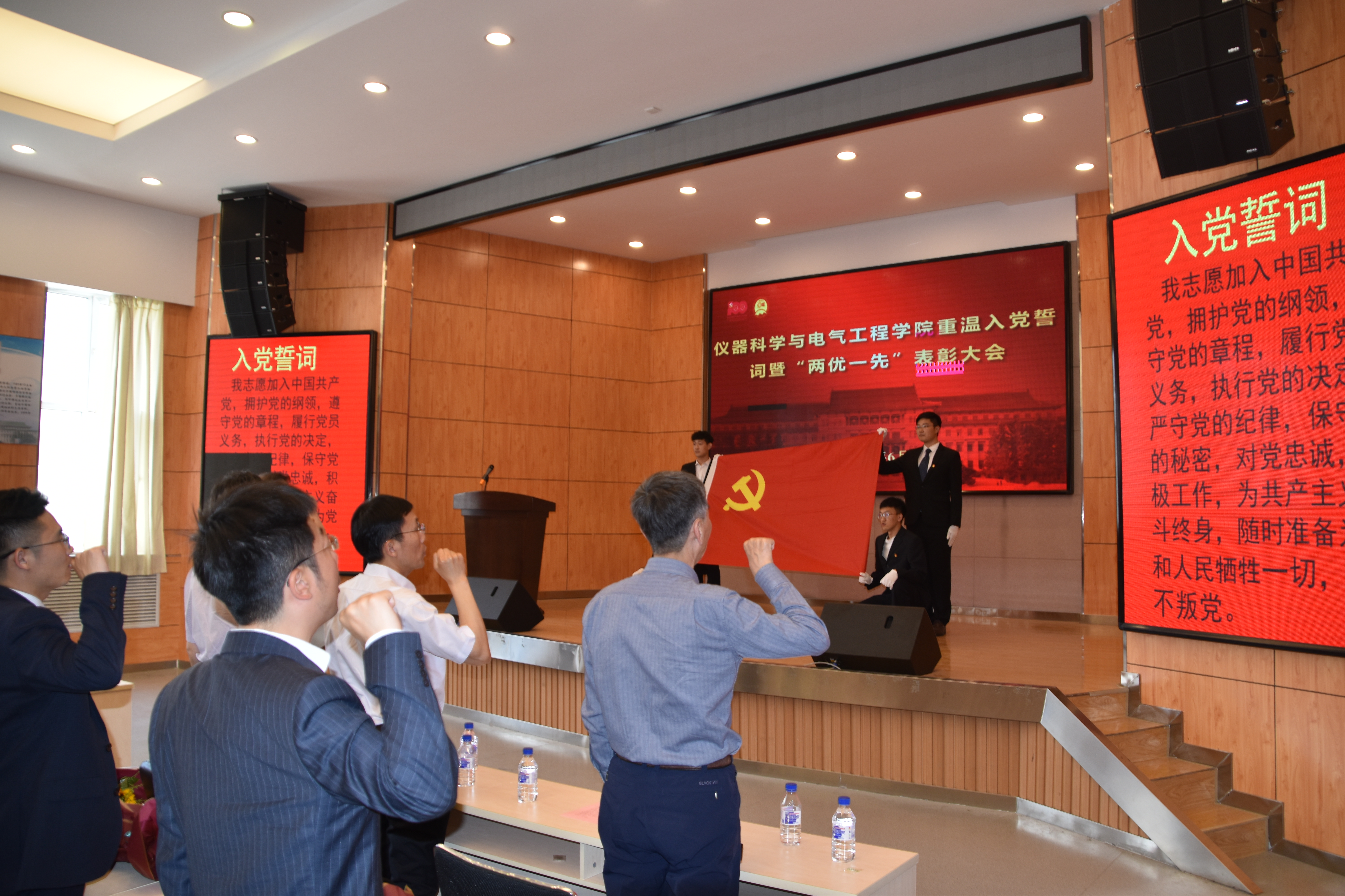 为隆重庆祝中国共产党成立100周年,深入学习贯彻习近平新时代中国特色社会主义思想,激励广大党员奋发进取、创先争优,以实干业绩迎接建党百年,仪器科学与电气工程公司党委于2021622日在朝阳校区图书馆报告厅举行重温入党誓词暨2021年“两优一先”表彰大会,公司全体党员参加大会,会议由仪器科学与电气工程公司党委副书记周伟同志主持。